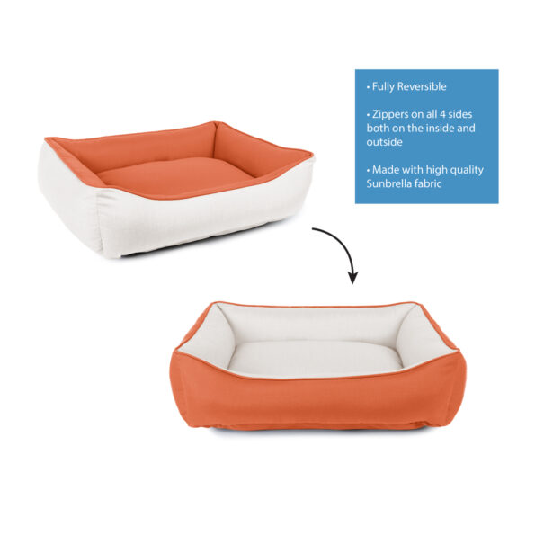 Our Original Sunbrella water-resistant indoor/outdoor bed is perfect for your pets’ outdoor leisure as well as indoor napping. The ample size and reversible option of this rectangle bed is designed to provide maximum comfort while keeping your pet clean, dry, and cool. The high-quality white polyester fiber filling ensures the highest level of relaxation and support.